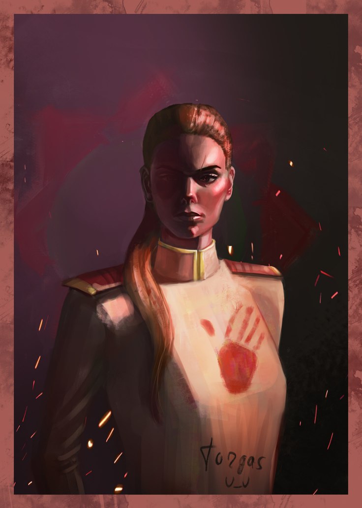 Вот, какой-то ксенос кабала с торжествующей мордой лица простреливает ей глаз, образуя огромную дыру в голове — не иначе как чудом попадая в зазор между психическими атаками и щитами, да минуя широкий клинок, способный работать как щит.