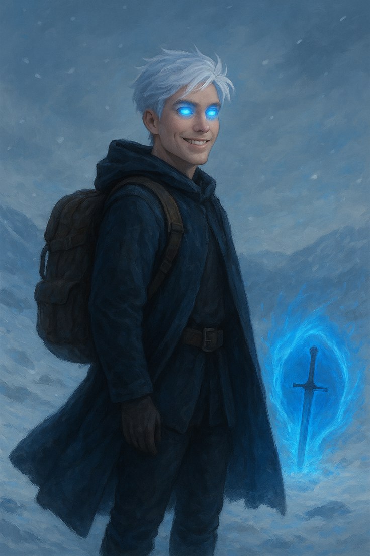 Говорят, глаза — зеркало души, и если это правда, то душа этого человека сияла, как чистейший лёд под солнцем. Ярко-голубые, почти бирюзовые, они будто излучали собственный свет. Взгляд был холоден, проницателен, но не безжизненен — напротив, в нём теплилось что-то человеческое, скрытое под маской хищного спокойствия. Его улыбка — не совсем злая, но пугающая своей уверенностью.