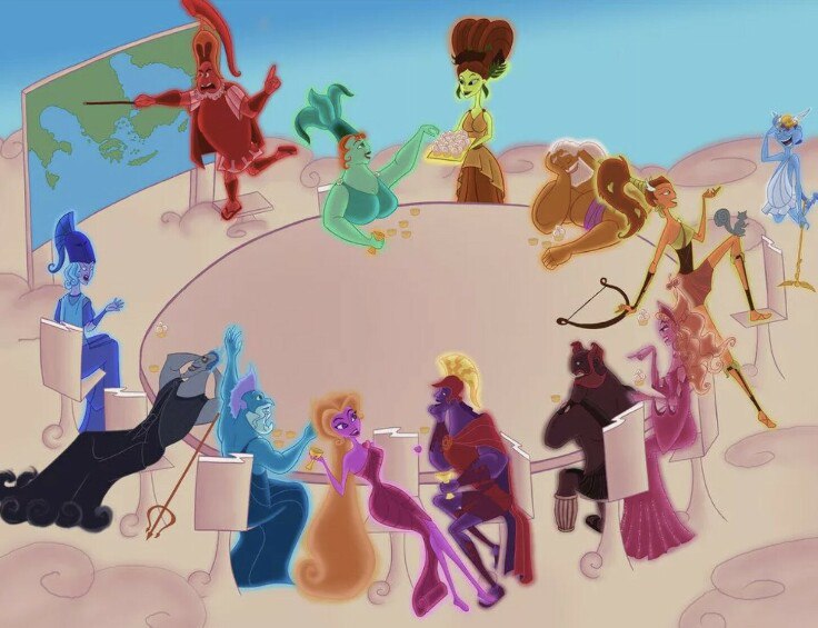 Золотые облака стелются по небу, сверкающие вспышками молний от громогласного смеха. Олимп, прямо как какое-то небесное кабаре: столы из хрусталя парят в воздухе, кубки с нектаром сами наполняются, амброзия подаётся на летающих тарелках, а арфы играют сами по себе. Это место словно рай для тусовщиков, вот первая ассоциация с этим местом.