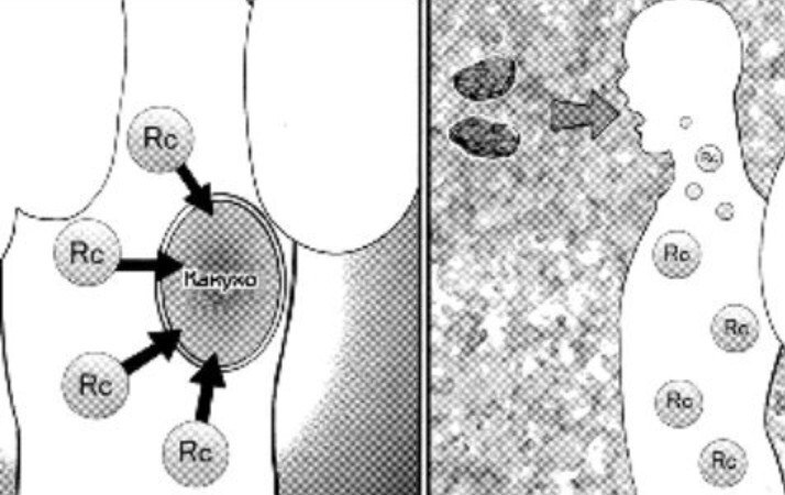 В этом мире у всех присутствуют в теле Rc-клетки. Данные клетки присутствуют в организме людей и гулей, они циркулируют по телу, как кровь, но могут становиться твердыми словно этакая зубная эмаль, за что и получила условное название «жидкие мускулы». Концентрация этих клеток в телах обычных людей невелика, но у гули она намного выше, из-за чего они, собственно, и являются гулями, и чтобы восполнить запас этих клеток им нужно есть людей или себе подобных, усваивая их клетки и производя из съеденной биомассы свои. Rc клетки циркулируют по RC-каналам, концентрируются и накапливаются в Какухо, после чего пронзают кожу и высвобождаются, принимая форму Кагуне, этаких отростков чуть выше поясницы, грубо говоря тентакли, хотя могут принимать разную форму. Активация высокого количества RC-клеток вызывает раскрытии Какуганов, изменения глаз который становятся черными с красным зрачком.