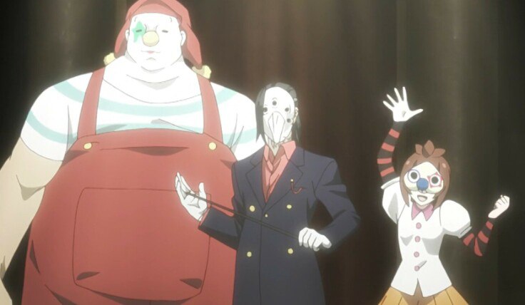 Братья Бин, ещё одни гули в плащах и масках. Опасные противники, убившие уже множество следователей. Но у окна, прислонившись к стене стояли мужчины в белых костюмах, члены банды так и называемые «Белые Костюмы». Им было приказано помочь в сложившийся ситуации и проконтролировать что все прошло без проблем, этот Лис уже убил с десяток гулей из Древа Аогири и просто так никто это оставлять не намерен.