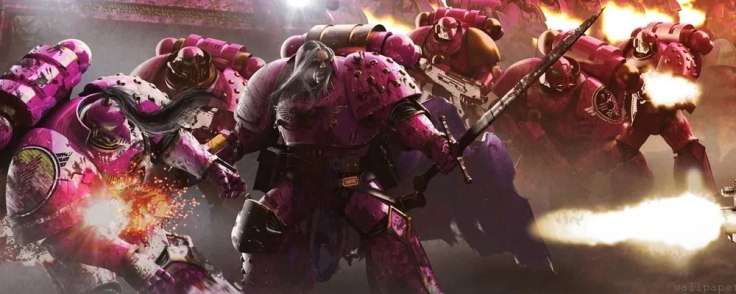 Воителя, чьё лицо искажается в волчьей, нет, даже демонической ухмылке — он был ближе к Кровожадам Кхорна, нежели волкам (?) Фенриса.