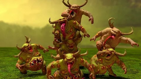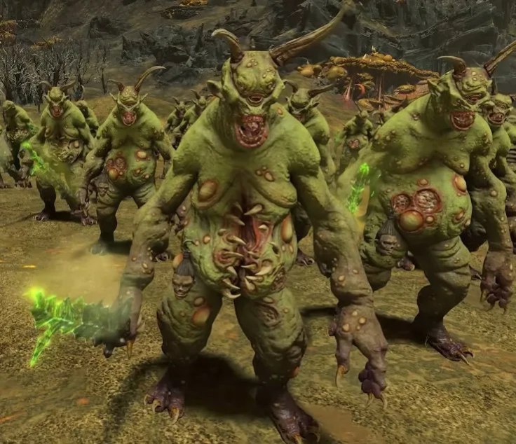 А вдали стал вылезать из ядовитого тумана болезненных испарений гигант, превосходящий в размерах даже Кровожадов Кхорна и Хранителей Тайн Слаанеш — Великий Нечистый.