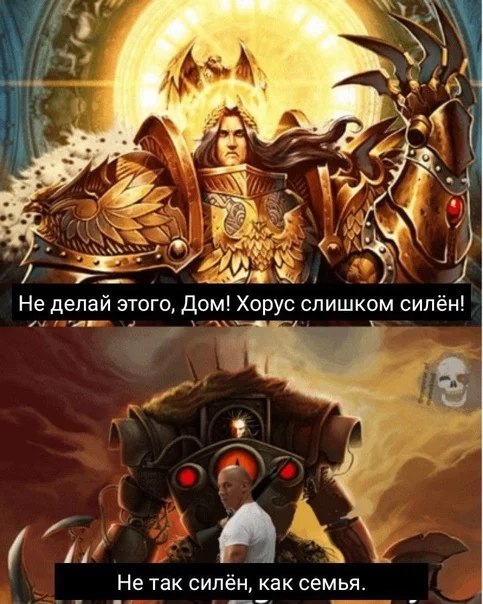 Бешено двигающийся Воитель на моих глазах и во время моего шага назад попадает своей огромной булавой прямиком по выступившему вперёд Вулкану. Рука которого тут же ломается и разрывается под воздействием начинённой силой Хаоса булавы, но стойкий Вечный, не знающий о том, что он Вечный — лишь сцепливает зубы и обрушивает собственный молот на Луперкаля, но тот перехватывает оружие примарха Саламандр ладонью своего Когтя Воителя.