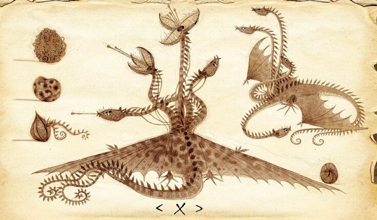 — Когда он раскрывает свои пасти — а их там три на каждой голове! — он начинает пахнуть. Сладко так, бобами черными, которые давече Йохан привозл к нам, как их… чоколодэм пахнут опьяняюще. Ты идешь на запах, думаешь: «О, ягодки!». А там — КЛАЦ! И нет тебя.
