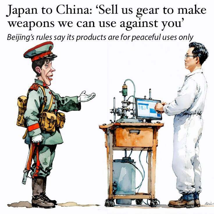 Япония объявила ремилитаризацию и столкнулась с тем, что производства всякого нужного подсгнили, поэтому решила закупать компоненты и станки для производства вооружений у Китая.