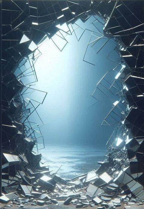 И тут зеркальную стену проламывает стол, прилетев откуда-то из коридора…