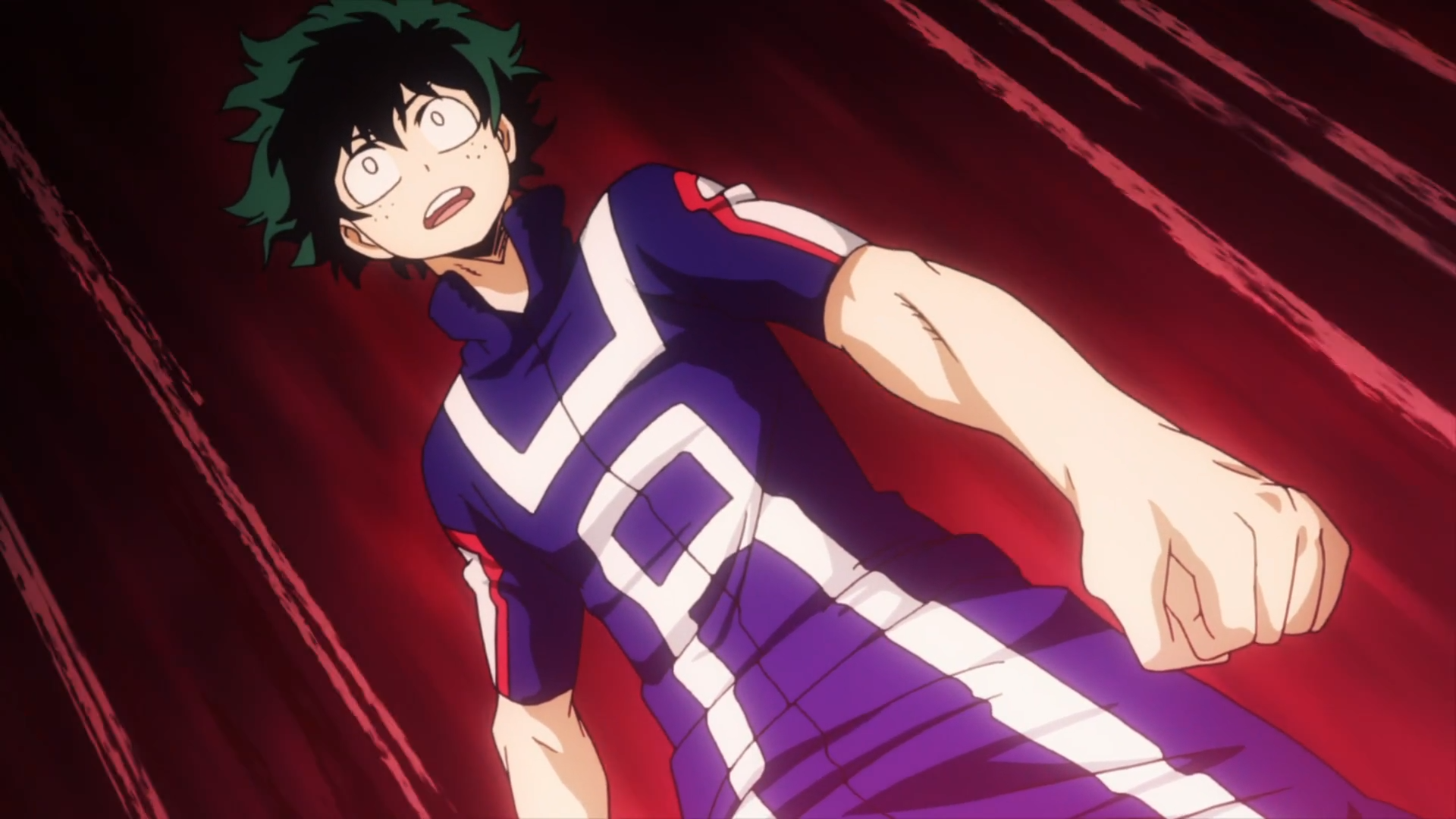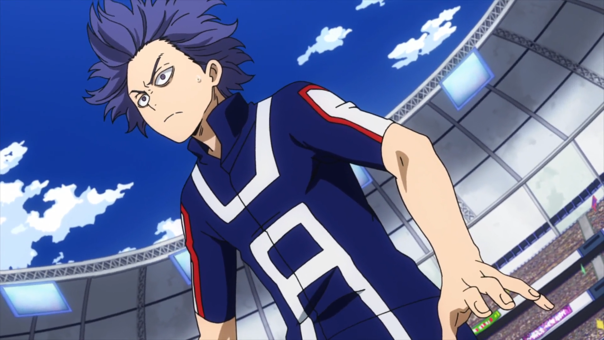 — Первая битва! Этому парню пришлось пройти через многое, чтобы попасть сюда! И это достойно уважения. Но что не так с его физиономией? Встречайте! Мидория Изуку с геройского факультета!