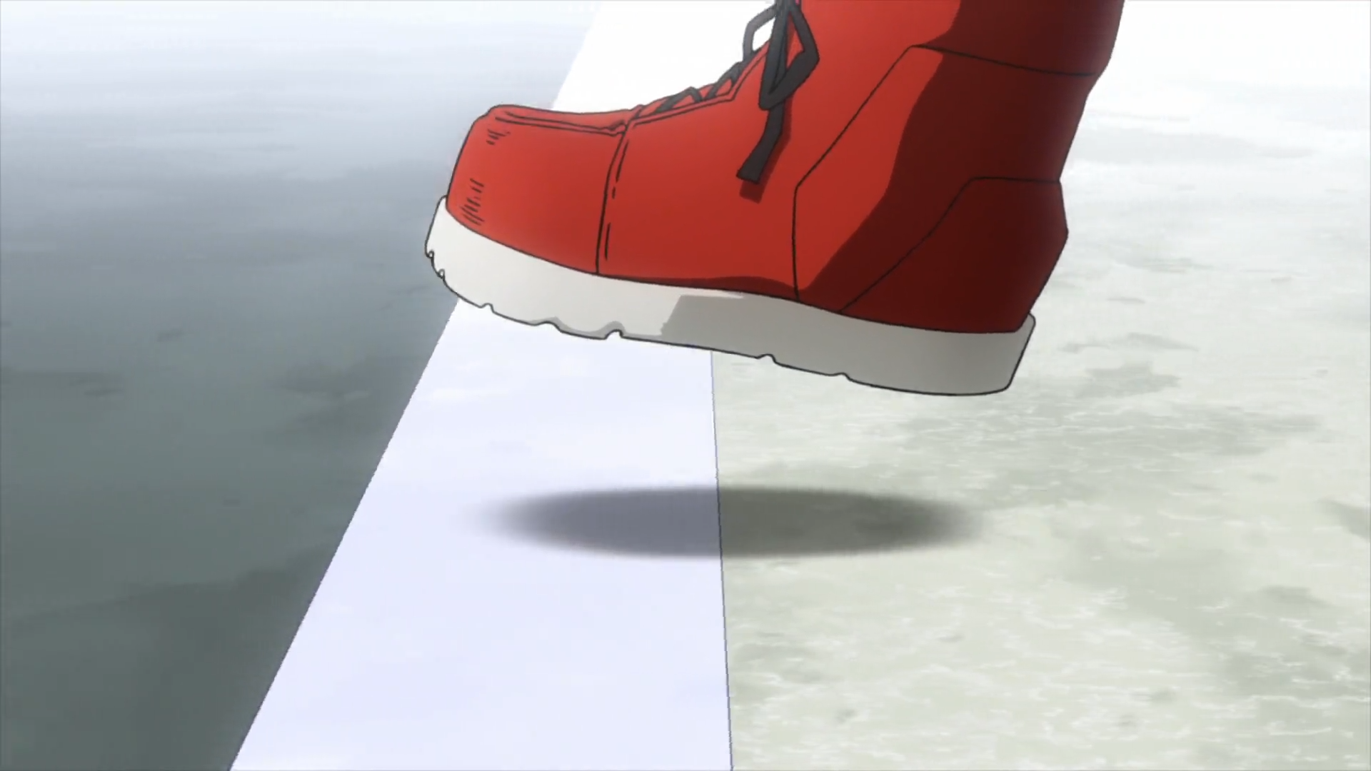 Тем временем на арене, Мидория подошёл к краю, его нога уже была занесена над “пропастью”.
