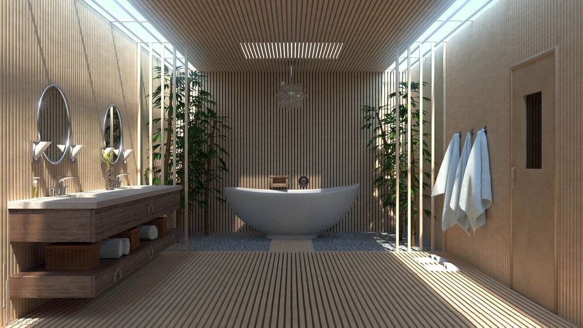 Закрыв за нами дверь ванной комнаты, я быстро оценил здешний интерьер. Помещение было оформлено в традиционно-современном стиле. Рассеянное освещение и деревянная отделка создавали уютную атмосферу, а большая керамическая ванна в центре так и манила меня, ведь в моём гнёздышке был только душ… А привитая с детства японская банная культура, была не просто звуком.
