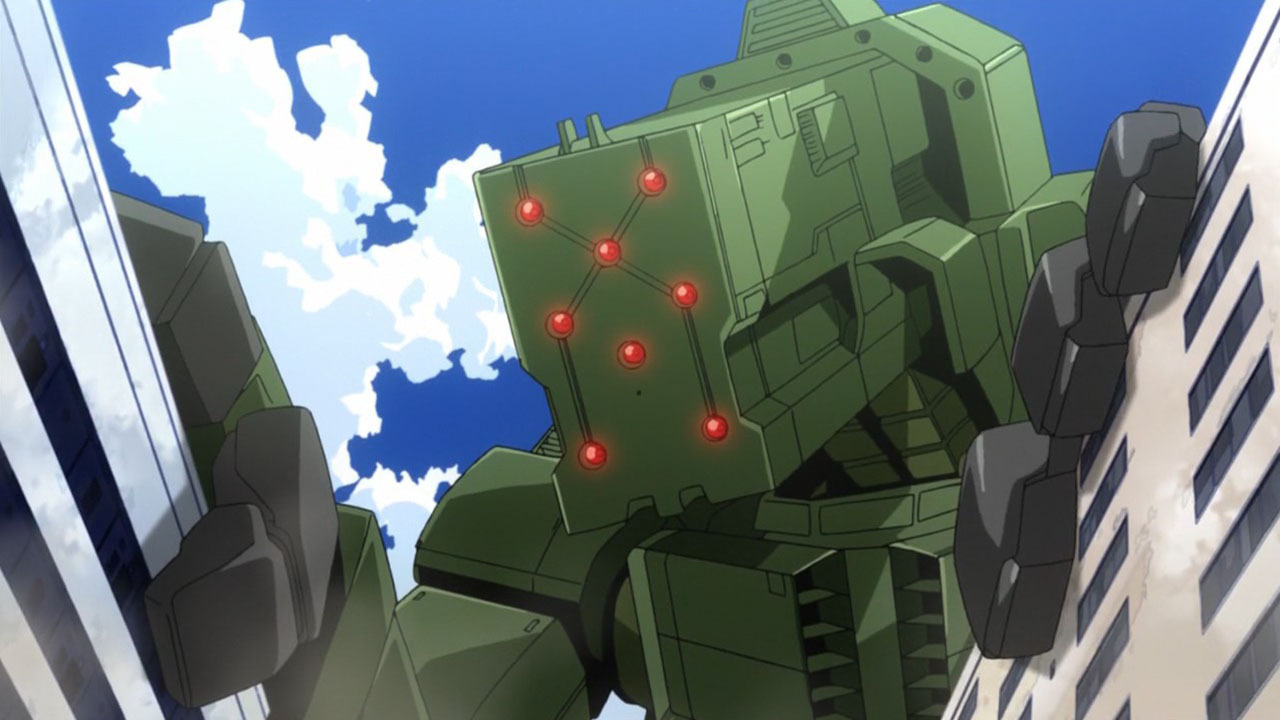 В итоге, минуя высокие и просторные коридоры, украшенные геройской тематикой и разного рода плакатами, от вдохновляющих до обучающих чему-то, я вышел на просторную алею. В метрах ста от меня находилась улица, максимально приближенная к самой обычной улице в каком-нибудь спальном микрорайоне Японии… Но можно было сразу сказать, что эта зона не являлась жилой. Большинство зданий выглядели так, будто застройщик выполнил свою работу только на половину, а после все побросал и свалил в закат. Ну и, конечно же, мое внимание привлек тот самый здоровенный робот темно-зеленого цвета, играющий роль вышедшего из-под контроля бедствия.