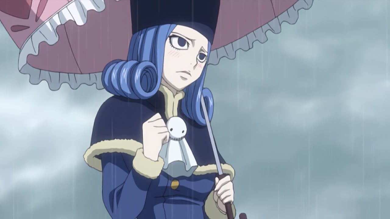 Несмотря на то как по моему лицу едва ли не шёл натуральный потоп, Джувия могла похвастать каким-то волшебным барьером вокруг её тела, так как прямо над головой волшебницы, дождь едва ли не пугливо избегал попадания на Локсар. В связи с этим, зонтик выглядел скорее… не очень уместной декорацией, так как в основном больше подходил для защиты от солнца.