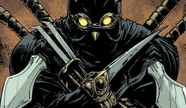 Атакованный враг повернулся ко мне, приготовив к бою два странных кинжала с непривычно широкими лезвиями. Если внимательно посмотреть, то можно было заметить, что холодным оружием он был увешан по самую макушку. Тут тебе целых четыре катаны, рукояти которых торчали из-за спины, два уже упомянутых кинжала, на запястьях браслеты бронзового цвета с выдвижными лезвиями. Хм, его маска, оказывается, изображает голову какой-то птицы, судя по клюву.