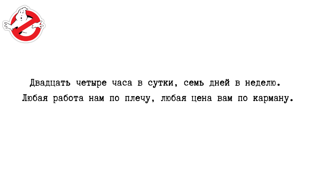 — Двадцать четыре часа в сутки, семь дней в неделю. Любая работа нам по плечу, любая цена вам по карману, — директор прочитал текст с визитки. — Белиберда какая-то.