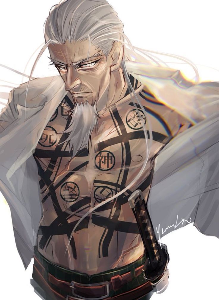 — Здесь. — внезапно остановившись и кивнув каким-то своим мыслям, Канехира скинул с себя тяжёлый камзол, после чего настал черёд белоснежной накрахмаленной рубашки, что скрывала под собой жилистое, всё изрисованное татуировками и длинными цепочками шрамов худощавое тело.