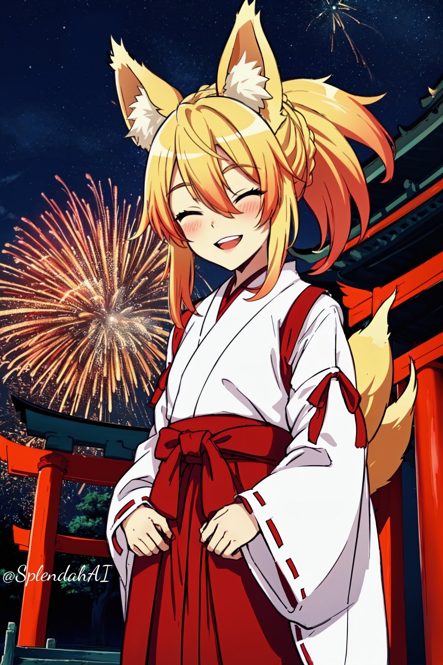Ещё проводить нас пришла милашка Куно. Вместо хмурой мордашки, после спасения матери, девочка так и источала безмерное счастье своей широкой улыбкой до самых лисьих ушек.